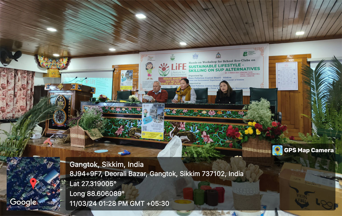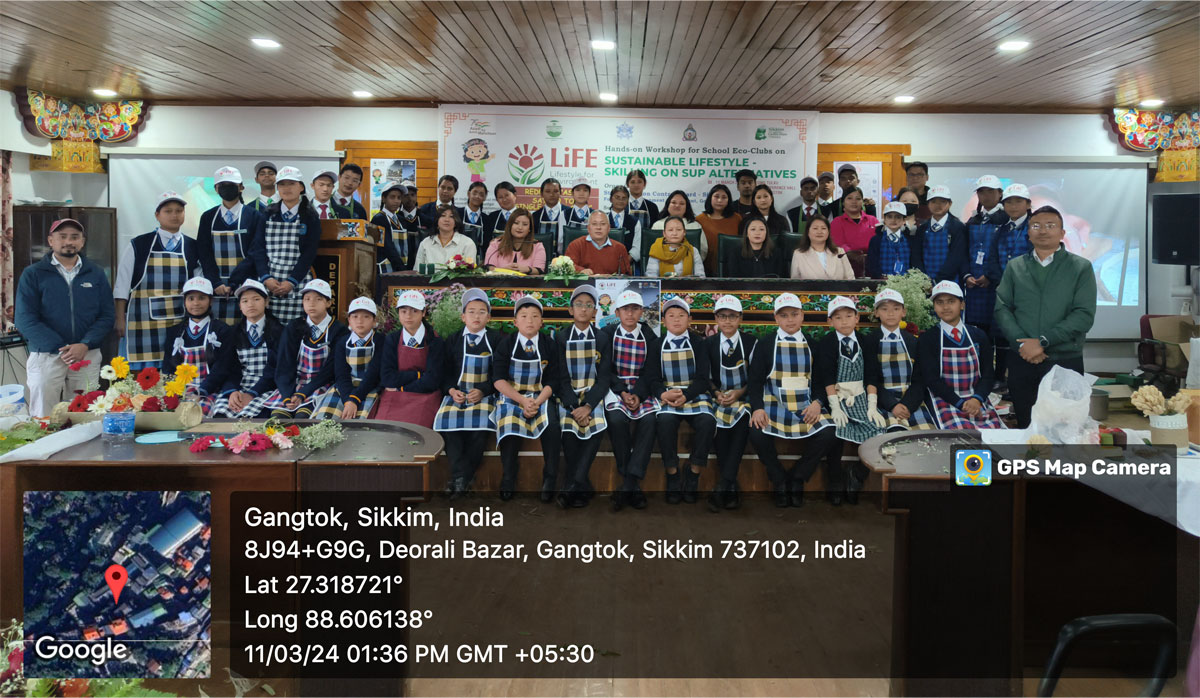 SPCB Sikkim organized a Sustainable Lifestyle Hands-on Workshop on SUP Alternatives for 100 students of schools in and around Gangtok on March 8-11, 2024 at Sidkeong Tulku